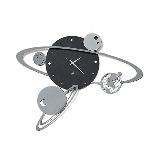 Arti & Mestieri Sistema Solare - Orologio da Parete di Design 100% Made in Italy - in Ferro, 50 x 36 x 8 cm - Nero Goffrato