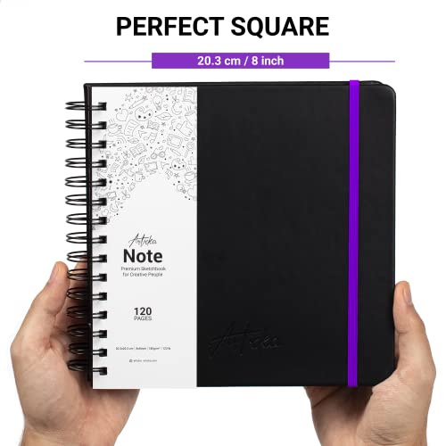 Articka Blocco da disegno con rilegatura a spirale, copertina rigida, quadrato, 20 x 20 cm, 120 pagine, chiusura con elastico, carta premium 180 g/m², ideale per matite, grafite, carbone, penna