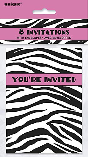 Confezione di 8 Compleanno Inviti e buste da la zebra stampa gamma