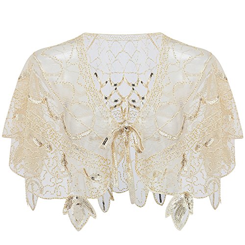 ArtiDeco Stola - Foulard da donna per abito da sera anni '20, stile retrò, per matrimonio, festa, sposa, sciarpa