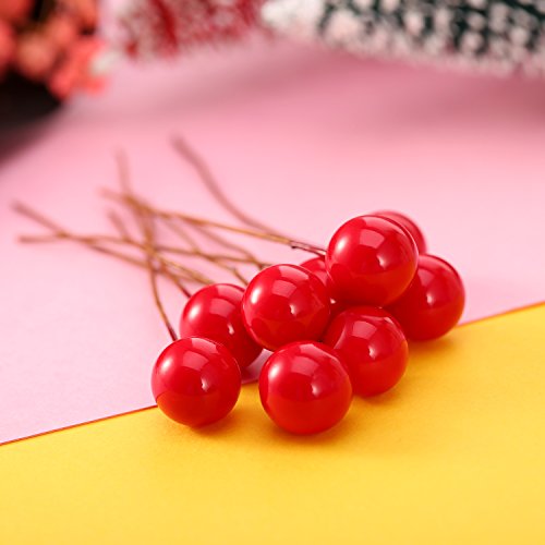 Artificiale Bacche di Agrifoglio, 100 Pezzi Mini 10 mm Falso Decorazione delle Bacche su Filo per Albero di Natale Decorazione Fiore Corona Fai da Te Mestiere Uso