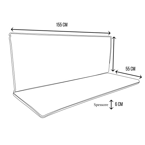 È composto da due cuscini separati, larghi entrambi 55 cm e di differente lunghezza in base alla dimensione scelta