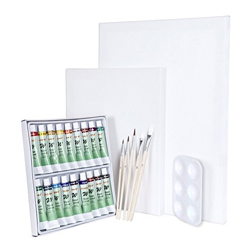 Artina Set Pittura con cavalletto pittorico da Campagna Malaga 18 acquerelli da 12 ml + 2 Tele, 5 pennelli 1 tavolozza