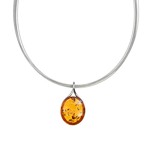 Artisana-Schmuck Ciondolo ovale con ambra e argento sterling 925/000 rodiato