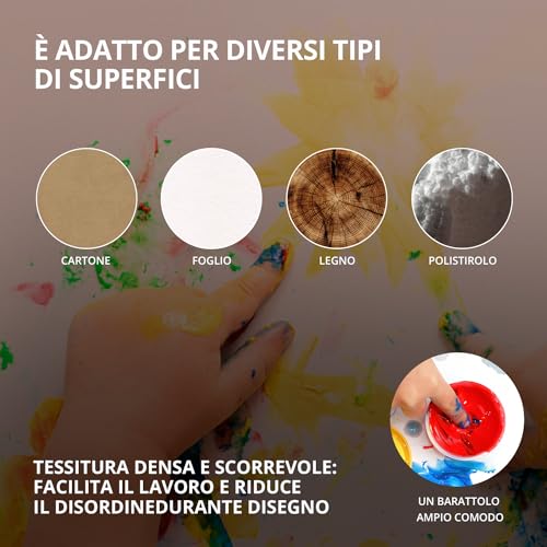 ✅ FACILE UTILIZZARE: Il set delle vernici per dita contiene 6 colori per mani per bambini. Grazie alle pratiche bottiglie e alla consistenza facile da usare con le dita, i bambini dai 3 anni in su possono facilmente disegnare e sviluppare le loro abilità creative con le vernici per dita