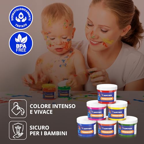 7 Artists Colori a Dita 6x60ml Colori a Dita per Bambini Atossici | Colori per Mani | Tempere a Mano | Finger Paint Bambini | Colori per le Mani | Colori con le Dita per Bambini | Pittura a Dita