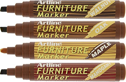 Artline 95 - Pennarello coprente per graffi su pavimenti in laminato e mobili, colore noce/acero/mogano/rovere, 4 pezzi