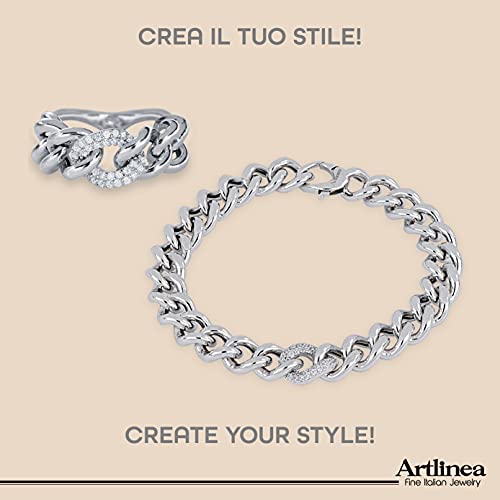 Artlinea, Anello Catena in Argento 925, Gioiello Realizzato in Argento Placcato Rodio con Pavé di Zirconi, Misura 6, Made in Italy