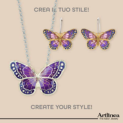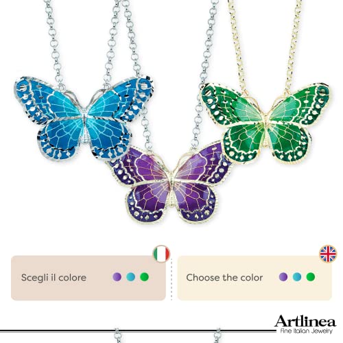 Artlinea, Collana in Argento 925, Gioiello Dorato con Pendente a Farfalla, Smalto Viola a Cattedrale Eseguito a Mano, Chiusura a Moschettone, Made in Italy