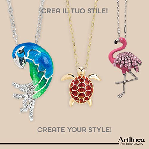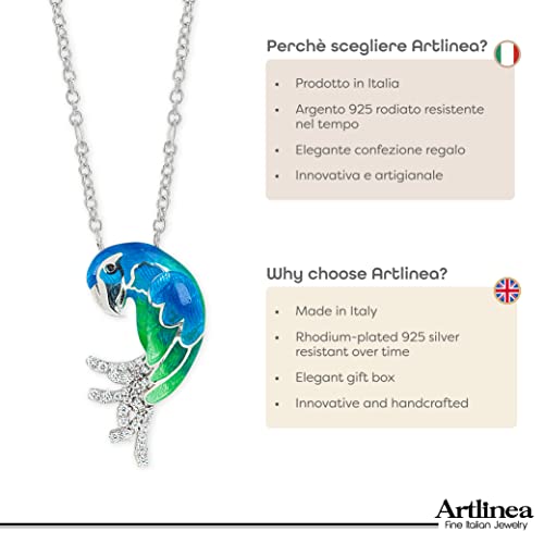 Artlinea, Collana in Argento 925, Gioiello Rodiato con Pendente a Forma di Pappagallo, Smalto eseguito a mano di colore Verde e Blu, con Cubic Zirconia, Chiusura a Moschettone, Made in Italy