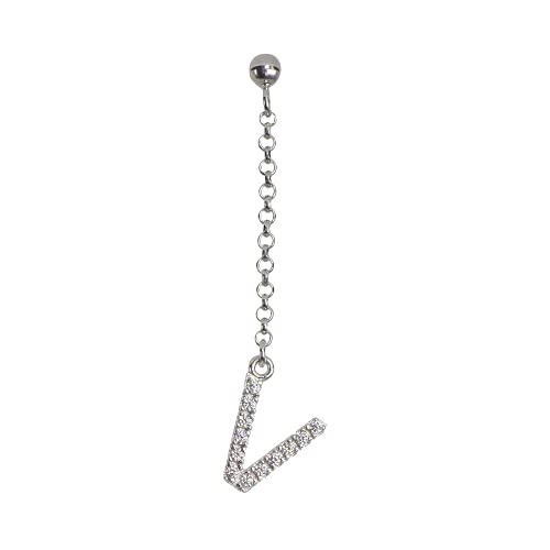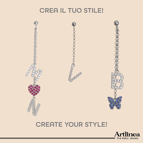 Artlinea, Mono Orecchino in Argento 925 Sterling, Orecchino con Pendente Singolo con la Tua Iniziale Maiuscola di Zirconi Incastonati, Tutte le Lettere Disponibili, Made in Italy