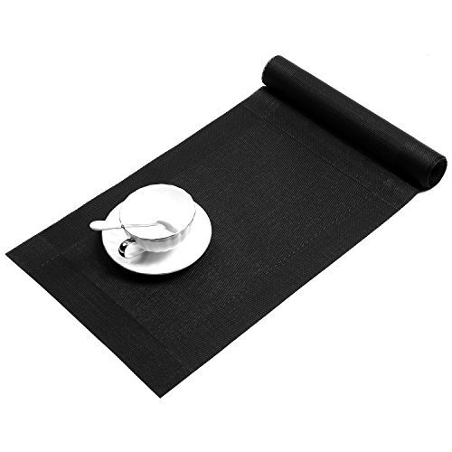 U'Artlines Set di 6 tovagliette con Runner Woven Vinyl PVC Resistente al Calore e Lavabili(6+1,Nero)