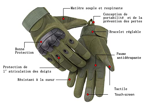 Artop Guanti Militari Tattici Guanti Touch Screen Estivi da Moto Motocross con Protezione Dita, Guanti Sportivi da Moto Ciclismo Scooter per Uomo Donna(Verde militare,XL)