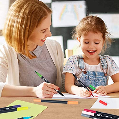 Inchiostro di alta qualità: le penne a doppia spazzola sono realizzate con inchiostro a base d'acqua, privo di acidi, inodore e sicure. L'inchiostro scorre bene, scrivere e colorare senza intoppi, ad asciugatura rapida, senza sanguinamento o sbavature, e sicuro per bambini e adulti.