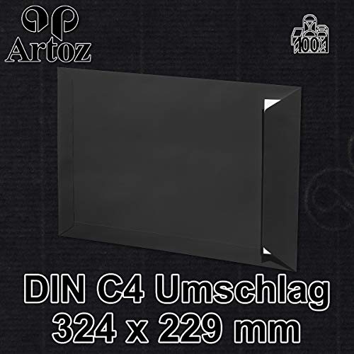ARTOZ 50 buste DIN C4 con chiusura adesiva, non foderate, 324 x 229 mm, nero (nero), senza finestra, serie 1001