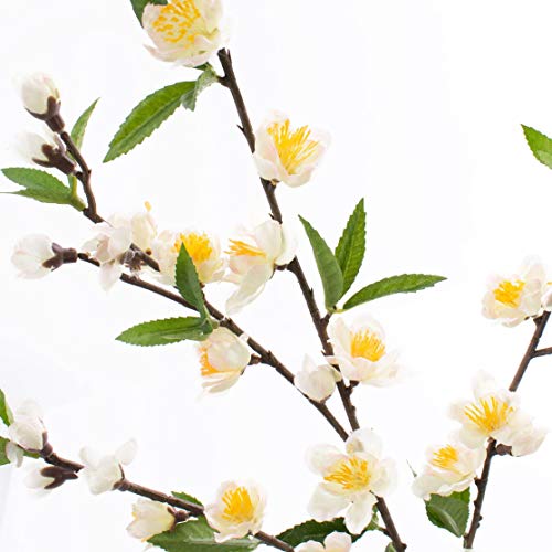 Artplants.de Ramo di ciliegio Artificiale con 39 Foglie, 42 Fiori, Crema-Bianco, 65cm - Ramo Fiorito/Fiori di ciliegio