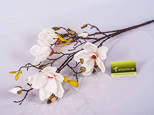 Artplants.de Ramo di Magnolia Artificiale Lilo, 4 Fiori, germogli, Bianco-Rosa, 110cm - Ramo Fiorito/Fiori di Magnolia