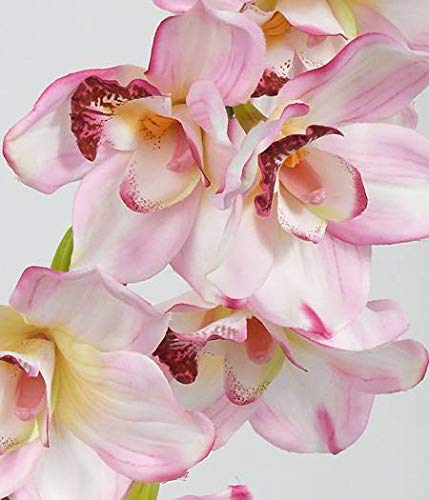 Artplants.de Ramo d'orchidea cymbidium Artificiale Kalah, Bianco-Rosa, 90cm - Orchidea Decorativa/Ramo Finto