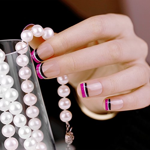 ArtPlus Unghie finte 24pcs Twin Tune False Nails French Manicure Full Cover Medium Length with Glue Fake Nails Art