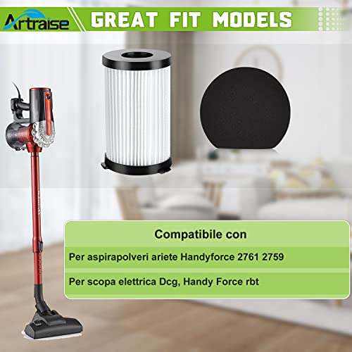 Artraise 6Pcs Filtro di Ricambio per Ariete Handyforce 2761 2759 Aspirapolvere, 6 Filtri e 6 Filtri in Schiuma Compatibile con Scopa Elettrica handyforce