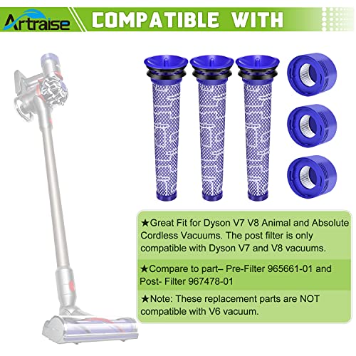 Artraise Filtro per Dyson V8, 3 Pezzi Pre Filtro Post Filtro per Dyson V8 V7 Absolute Animal Fluffy Aspirapolvere Ricambi