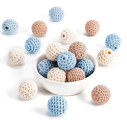 ARTREE 30 Pezzi Crochet Perline di Legno Mix Handmade Perline di Legno all'uncinetto 20mm per DIY Gioielli Collana Braccialetto Crafting (Blu)