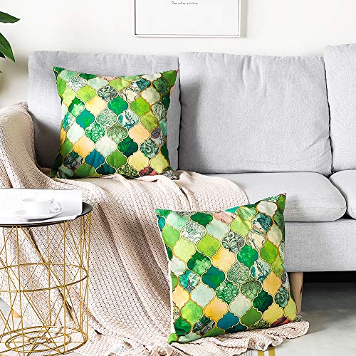 Artscope Confezione da 2 Federe per Cuscini Divano Poliestere Biancheria Gettare Decorativo Caso Federa Cuscino Divano Auto Home Decor 45 x 45 cm (Geometria Verde di Phnom Penh)