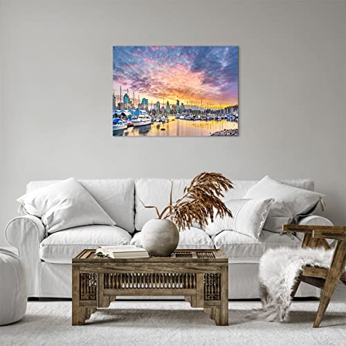 ARTTOR Quadro su tela - Elemento unico - Barche urbano città paesaggio - 70x50cm - Pronto da appendere - Home Decor - Stampe su Tela - Quadri Moderni - completamente incorniciato - AA70x50-3108