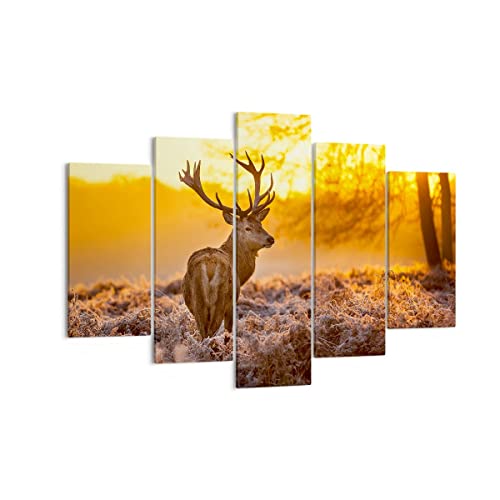 ARTTOR Quadro su tela - 5 Parties - Autunno paesaggio natura foglia - 150x100cm - Pronto da appendere - Home Decor - Stampe su Tela - Quadri Moderni - completamente incorniciato - EA150x100-2552