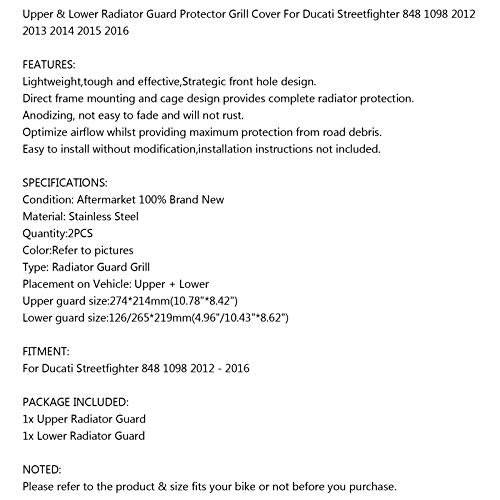 Artudatech Moto Radiatore Guardia, Moto Superiore Inferiore Griglia Del Radiatore Griglia Copertura Laterale Copertura per DUCA TI Streetfighter 848 1098 2012-2016