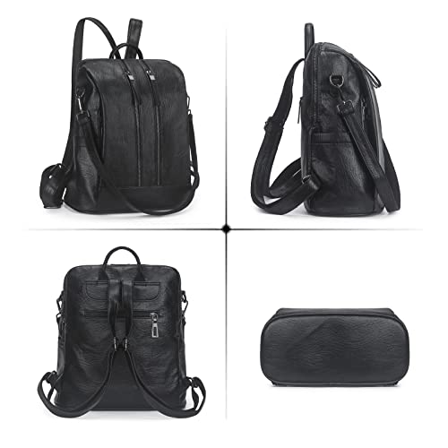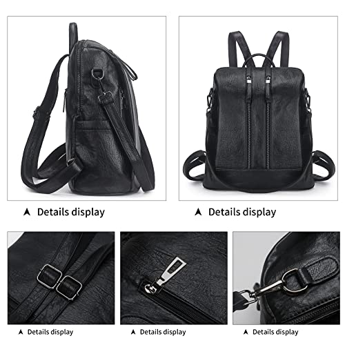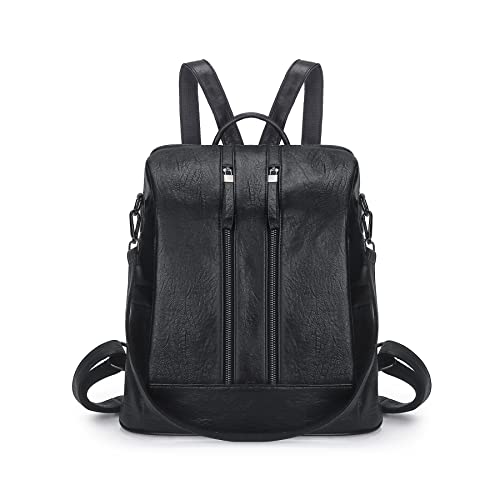 Artwell - Zaino da donna, in pelle PU, convertibile, borsa a tracolla con nappe, Nero (B-1-nero), L