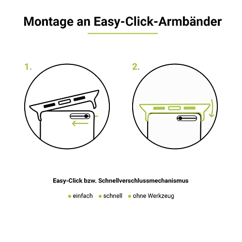 Facile da installare: gli adattatori per cinturino possono essere inseriti rapidamente nella parte superiore e inferiore dell'Apple Watch nei supporti previsti. I connettori in acciaio inox si chiudono esattamente con i limiti dello smartwatch.