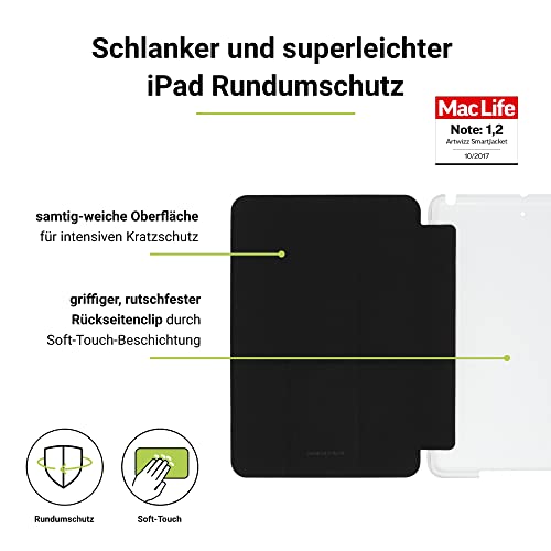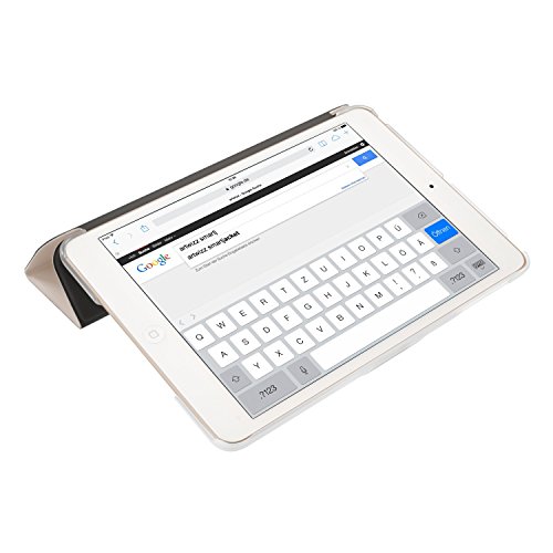 Custodia a libro ultrasottile per iPad mini/ mini 2/ mini 3. Retro in gomma per un grip sicuro. La cover flip magnetica in poliuretano si aggancia al retro. Funge anche da supporto.