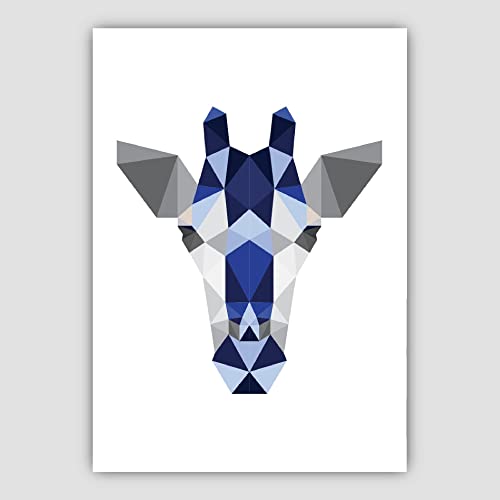 Artze Wall Art Set di 3 stampe artistiche geometriche della giungla, motivo: giraffa, leone, elefante, 30 cm di larghezza x 40 cm di altezza, blu/grigio