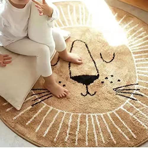 ARUGYTEI Rotondo Tappeto da gioco per bambini, Lavabile, Tappeti e scendiletto per bambini, Tappetini Morbido imitazione cashmere,Leone giallo-marrone, motivo animalier, ø 80 cm