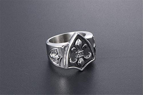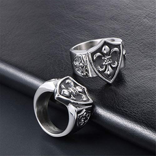 Aruie - Anello stile cavaliere, da uomo, in acciaio inossidabile, motivo: fiore di giglio in rilievo, stile vintage e Acciaio inossidabile, 22, cod. MEJ1233
