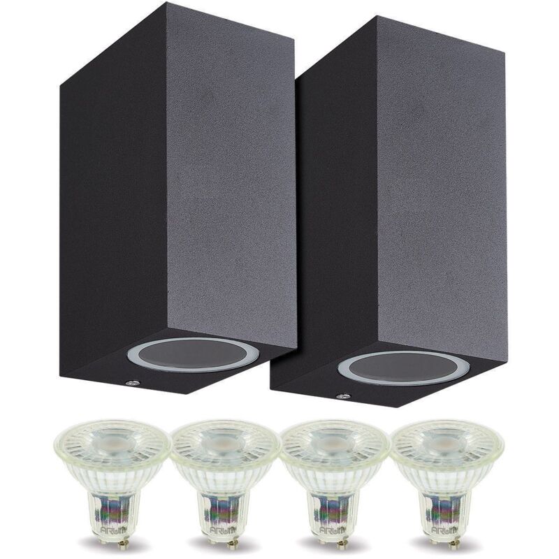 Set di 2 applique da esterno biemissione Manathan BLACK con 4 lampadine LED GU10 5W Questo set contiene 2 applique a doppio raggio Manathan Black in fusione di alluminio e 4 lampadine LED GU10 5W PRO in vetro Ideale per evidenziare una facciata, applique per esterni discreta ed estetica. Caratteristica della lampada da parete: Corpo: Fusione di alluminio Finitura: nero Lunghezza: 6,5 cm Altezza: 15cm Larghezza: 9,5 cm Base: 2 x GU10 (fornite senza lampadine) IP54 Base: 2x GU10 Caratteristiche della lampadina: Lampadine LED di qualità Consumo 5W Emissione luminosa: 420 lumen (equivalente a 50 W) Attacco GU10 Angolo di 60° Non funziona su dimmer (non dimmerabile) Marca ARUM ILLUMINAZIONE Norme CE, ROHS 2 anni di garanzia del produttore Larghezza: 60mm Altezza (cm): 153mm Nbres d ampoules: 2 Base: GU10 Alimentazione: 220 Garanzia del produttore: 2 ans uso: Interiore / esteriore Tecnologia: Livré sans ampoule Materiale: Fusione di alluminio IP: 54 Type de lampe: NC Type de
