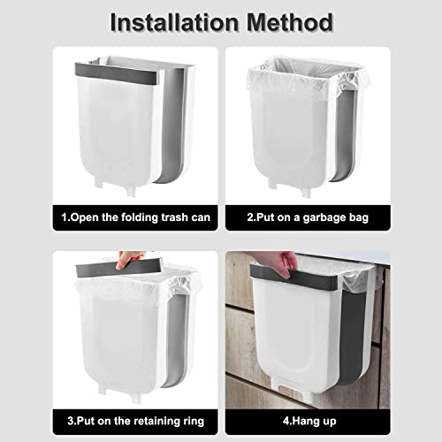 Arvioo Bidone della Spazzatura Pieghevole per Armadio da Cucina 9 Litri Pattumiera Appesa A Parete Cestino per I Rifiuti Bagno WC (Bianco)