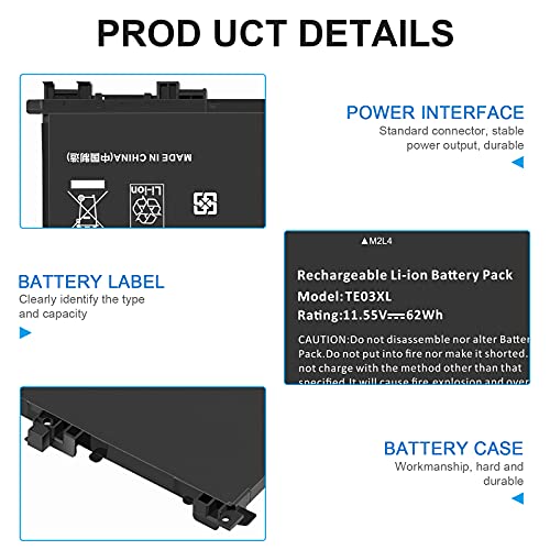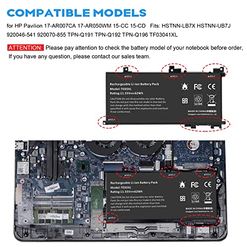 ARyee TE03XL Batteria compatibile con HP 15-BC000 15-BC300 15-BC400 OMEN 15-AX000 Series, Sostituzione per TE03 TE03XL HSTNN-UB7A HSTNN-OB7T 849570 849570-541 849910-850 905277-001 (11.55V 62Wh)