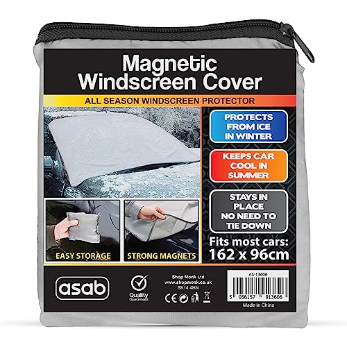 ASAB Copertura Magnetica per Parabrezza dell'Auto + Sacchetto di Trasporto - Protezione Universale da Brina, Gelo, Ghiaccio, Neve ed Escrementi di Uccelli