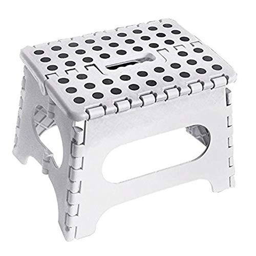 ASAB, Piccolo Sgabello Pieghevole in plastica Multiuso, Antiscivolo, Pieghevole, Facile da riporre in Cucina, carico Massimo 150 kg-25 x 21 x 21 cm, Bianco, Standard