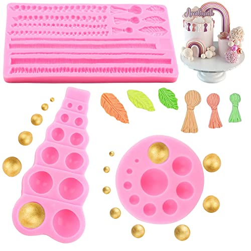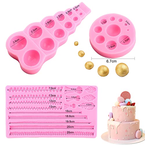 Asaisimg Set di 3 stampi per fondente a corda di canapa, 1 stampo in silicone per macramè per decorazione di torte e 2 stampi 3D per palline di perle, fondente, zucchero artigianale per torte al