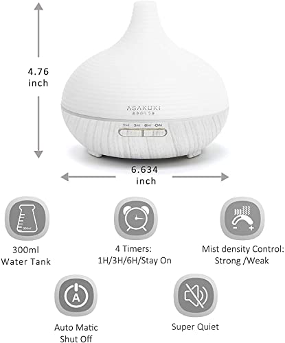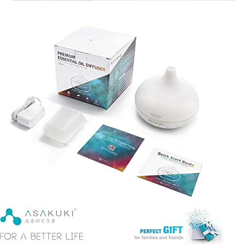 ASAKUKI Diffusore di Oli Essenziali 300 ml, Diffusore di Aromi Umidificatore ad Ultrasuoni con 7 Colori LED Luce Notturna, Diffusore per Oli Essenziali Senza BPA per Camera da Letto, Ufficio, Spa