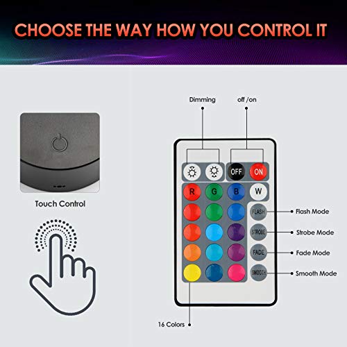 ❤【Luce Notturna a LED in 16 colori 】 questa lampada 3D dimmerabile può essere cambiata tra 16 colori, a seconda dell'umore e dell'ambiente, è possibile scegliere diverse modalità e colori. Con una piastra acrilica e luce a LED si crea un'illusione 3D visibilmente davanti ai vostri occhi. Nota: si tratta di un pannello 2D, ma ha un vivace effetto 3D. Rimuovere la pellicola sul retro della piastra in acrilico.