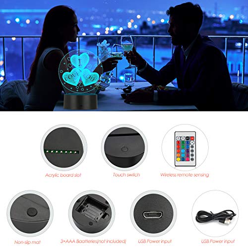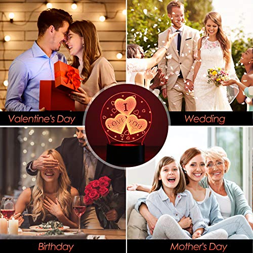 ❤【 ASANMU 3D Lampada Notturna Creativa 】 Questa lampada con illusione 3D è la migliore idea regalo per San Valentino per le donne. I ciondoli possono mostrare "Amore su 3 cuori d'amore quando si illumina. Sorprenderà e sorprenderà la persona amata e regalerà al vostro amore una notte dolce e pacifica.
