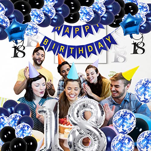 ASANMU Palloncini 18 Anni Compleanno Uomo, Decorazioni Compleanno 18 Anni di Palloncini Navy Blu Compleanno Feste Decorazioni Compleanno Banner Palloncini 18 Anni per Donna Uomo Adulti Riutilizzabile