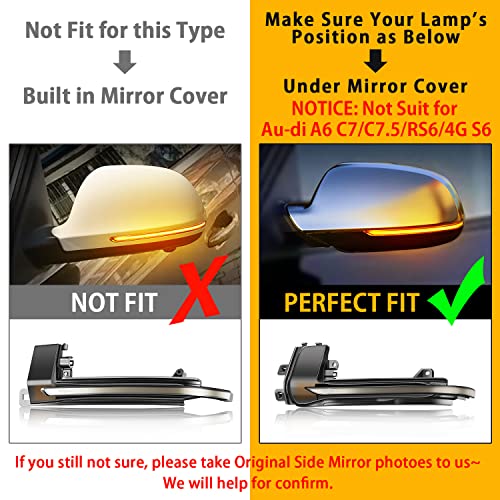 【Assicurarsi che il tipo di modello compatibile】 B8 e B8.5 Modelli retrovisore il coperchio dello specchietto retrovisore sia diverso. Il modello B8 (il segnale di svolta sarà incorporato nel coperchio dello specchio), Modello B8.5 (il segnale di svolta sarà sotto il coperchio dello specchio). Assicurati che il tipo di modello e la dimensione della lampada prima dell'acquisto e sentiti libero vieni a noi per una corretta guida.