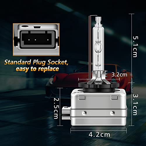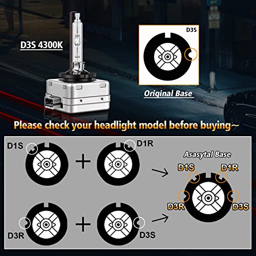 Asasytal D3S Lampadine HID Xeno, Bianco Caldo 4300K Ultra Luminoso Sostituzione Faro Bi HID 35W 12V Xenarc Kit di Modifica Del Faro, Sostituire per Lampadine per Fari Esterni Allo Xeno o LED, 1 Paio