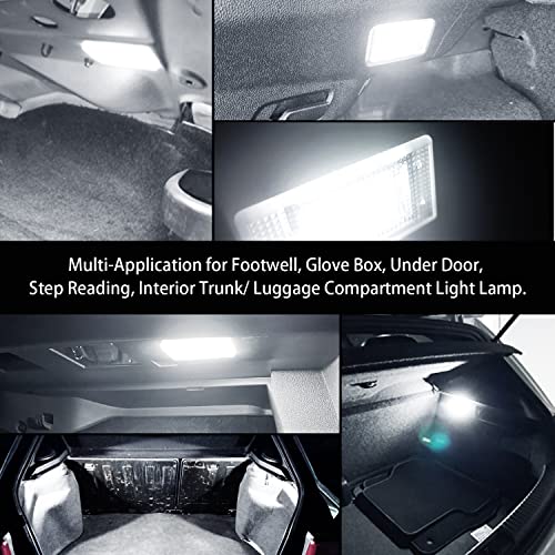 Perfact per l'articolo di aggiornamento delle lampadine alogene di serie, usate come luce sotto la porta/laterale, luci di cortesia, lampadina a pelta, lampada per bagagli, luce del bagagliaio, luce guanto da guanto. Assicurati che la forma, le dimensioni e il tipo di spina della lampada prima dell'acquisto.