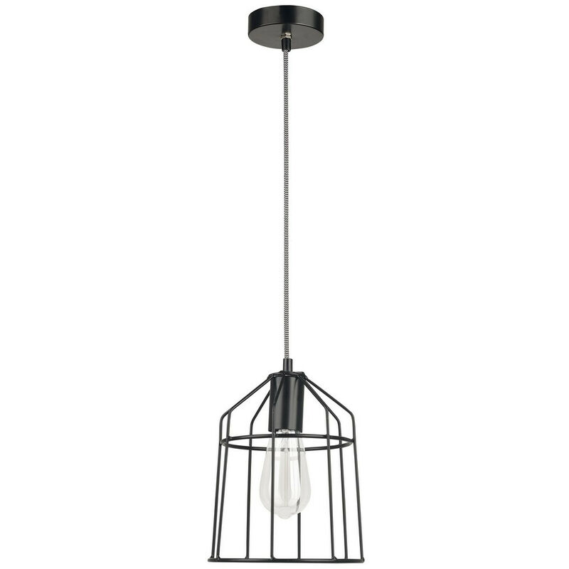 Merano Asbestos Plafoniera a sospensione con struttura in filo metallico da 19 cm, metallo nero opaco, filo in tessuto bianco LED E27 | Finitura: nero | Materiale: metallo | Classificazione IP: IP20 | Altezza: 120 cm | Lunghezza: 19 cm | Tipo di lampada: E27 | Lampadina inclusa: No | Dimmerabile: No | Peso: 0,3 kg | Potenza (massima): 1x12W